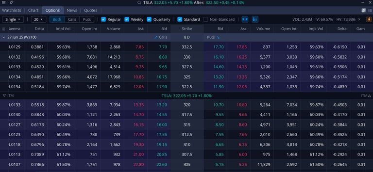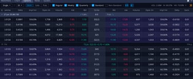 الفائدة المفتوحة (Open Int - Open Interest): العدد الإجمالي لعقود الأوبشن "المفتوحة" أو القائمة حالياً (لم يتم إغلاقها، أو ممارستها، أو انتهاء صلاحيتها بعد). تشير الفائدة المفتوحة المرتفعة إلى اهتمام مؤسسي أو مهني كبير بهذا الأوبشن.
