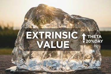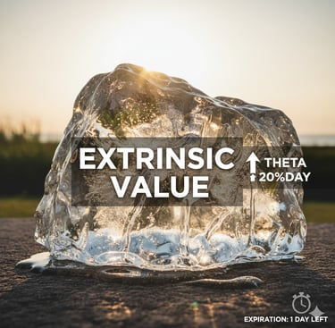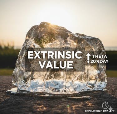 في الأوبشنز، القيمة الزمنية (القيمة الخارجية) هي "الثلج". تذوب ببطء في البداية، ولكن بمجرد تجاوز هذا الحد (حوالي 30-45 يومًا)، يزداد معدل الذوبان (تآكل ثيتا) بشكل كبير، مما يمتص بسرعة القيمة الزمنية المتبقية من الأوبشن.